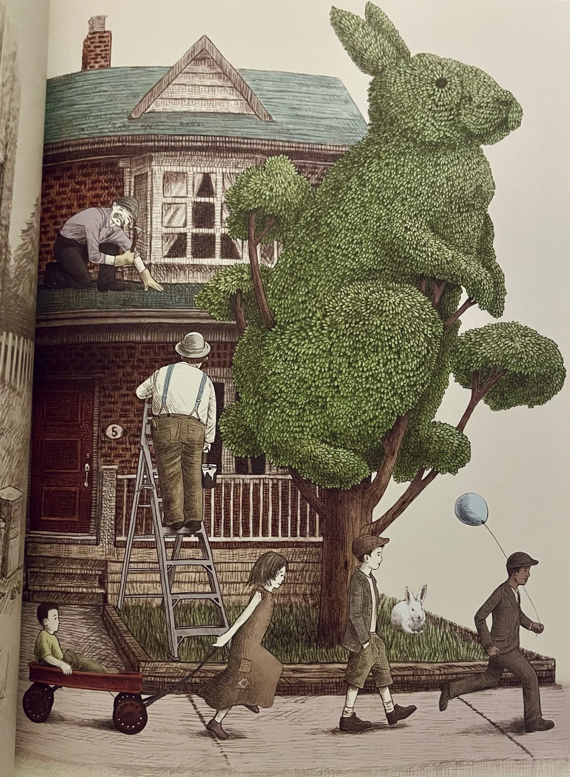 Get lost in the imaginative world of the Fan Brothers: a place you'll want to revisit again and again. "Something was happening on Grimloch Lane. Something good." One day, William discovers that the tree outside his window has been sculpted into a wise owl. Each day, more topiaries appear, each one more beautiful than the last.