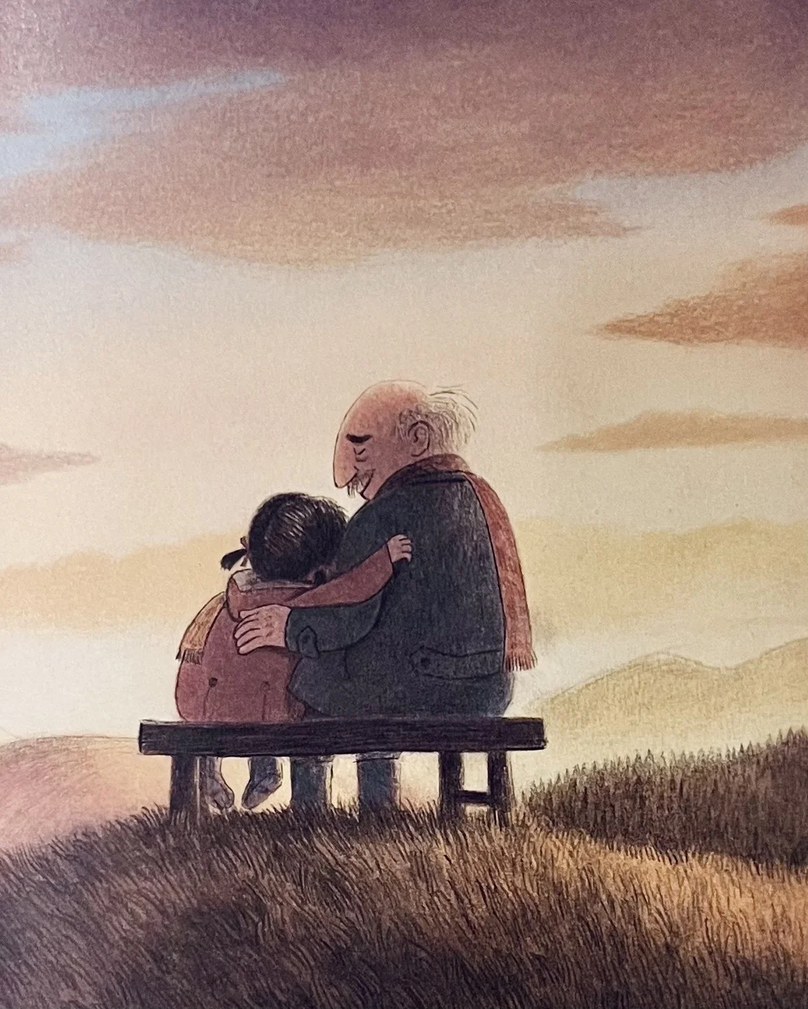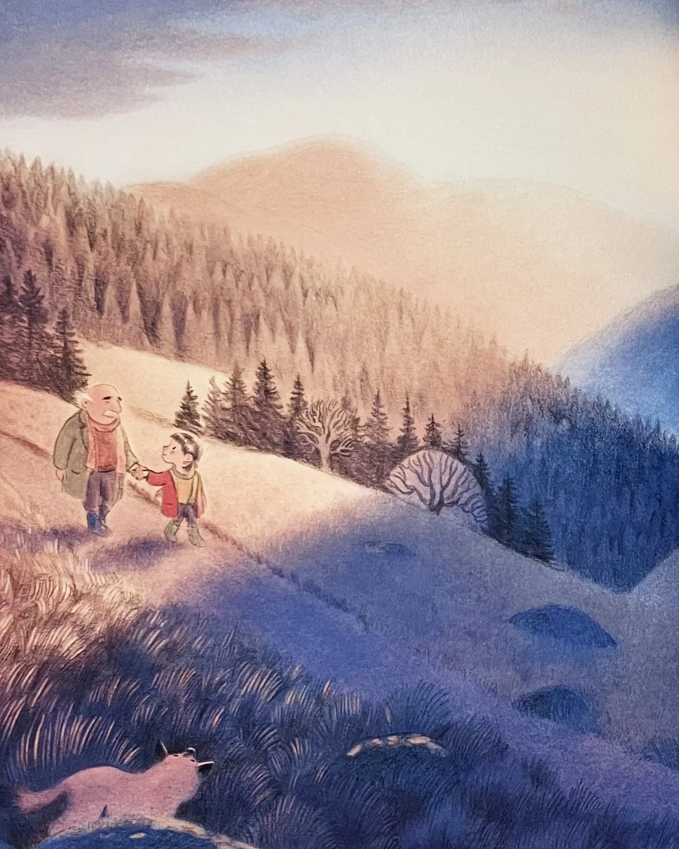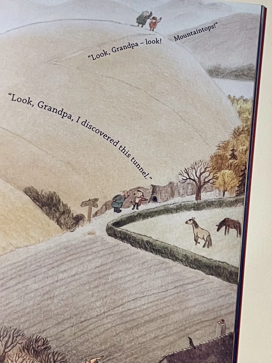His granddaughter shows him all her most favourite things: the mountaintops, the tunnel she discovered, the horse in the field. If only Grandpa could stay longer, then he could see the spring. But when time together is limited, it feels all the more sweet and special.